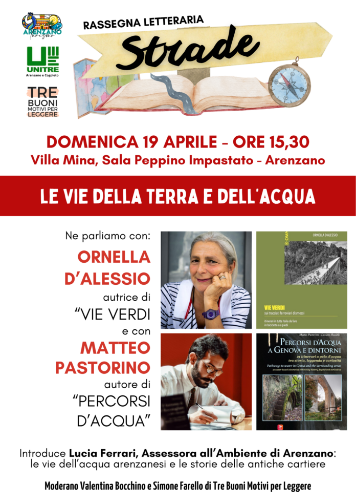 Saranno con noi due scrittori speciali: Ornella D’Alessio, giornalista, autrice di “Vie verdi” (Cinquesensi editore), e Matteo Pastorino, co-autore di “Percorsi d’acqua” (Erga edizioni). Due argomenti che interessano le nostre zone molto da vicino!