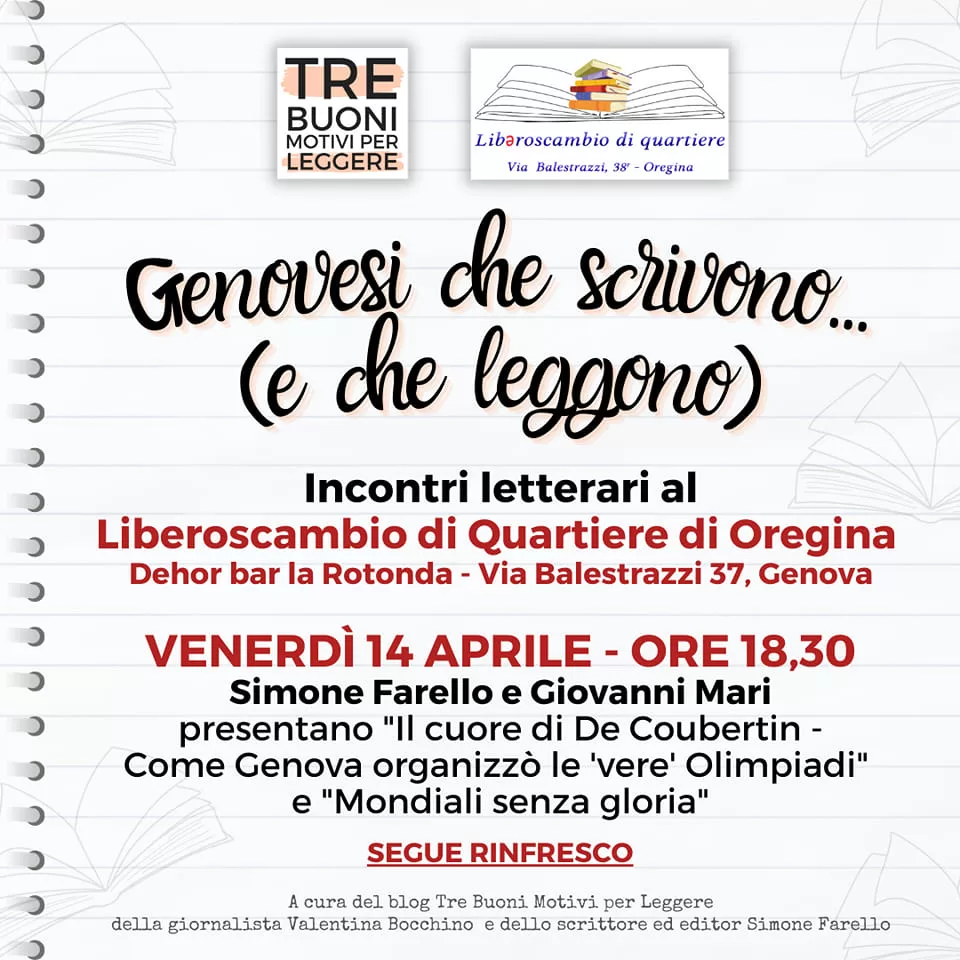 Prende il via la nostra rassegna “Genovesi che scrivono (e che leggono)”