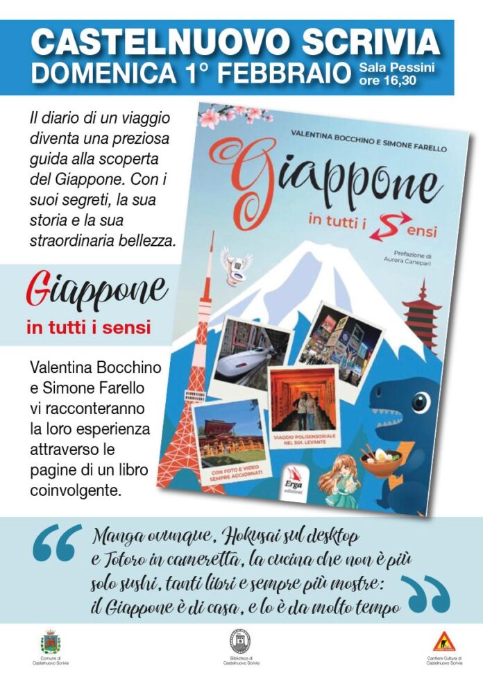 Cari amici, ci vediamo domenica 1 febbraio a Castelnuovo Scrivia (AL) con la presentazione del nostro libro “Giappone in tutti i sensi”.