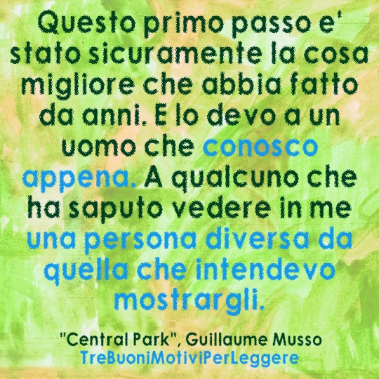 Ho letto “Central Park” di Guillaume Musso (Bompiani, 2014) incuriosita da alcune recensioni, e il libro mi ha convinta. Ecco qui tre buoni motivi per leggerlo: